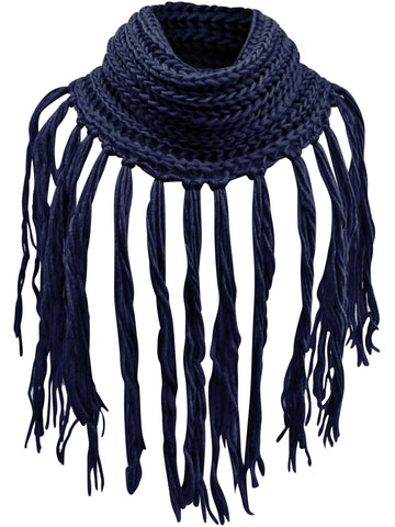 Made from a beautiful and soft knit material, this net-like scarf is lightweight and is trimmed in long wispy fringe. This delicate scarf has a stylish square shape, and can be worn many different ways. Scarf measures approximately 36 inches wide. Scarf measures approximately 36 inches long, end to end. Fringe trim measures approximately 6 inches long.